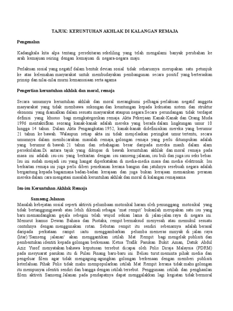 Gejala Keruntuhan Akhlak Di Kalangan Remaja Islam Pdf