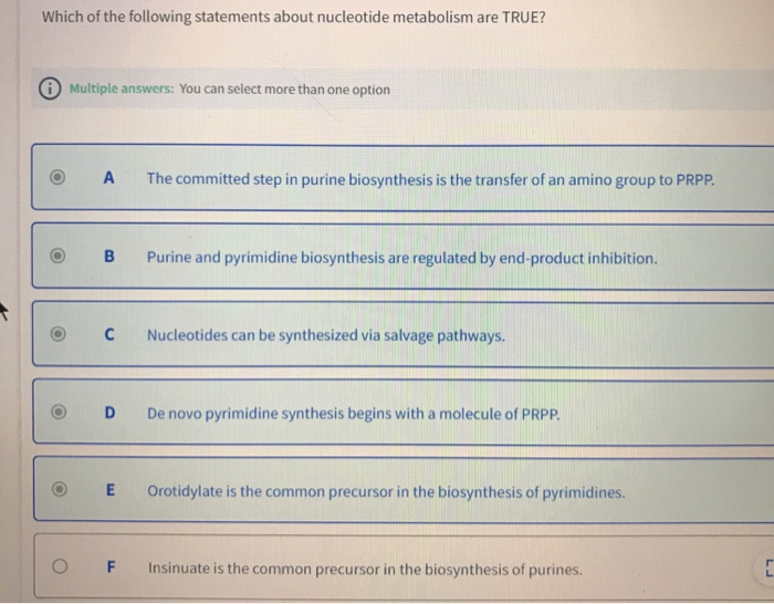 Which of the following statements isare true regarding nucleic acid primary structure. Carbamoyl phosphate aspartate quinone Orotate Pi H2O reduced quinone - C. Whichofthefollowingstatementsregardingnucleotidebasepairsistrue from BIOL 302 at University of South Carolina.